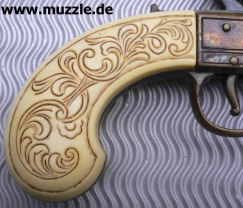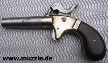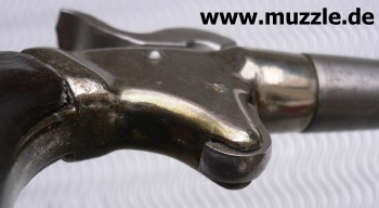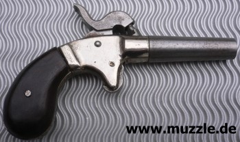 Perkussionsderringer unbekannter Herkunft. Plastikgriffschalen, Gehäuse Druckguss, Lauf, Piston und Hahn