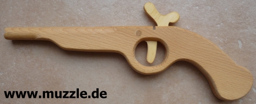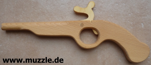 Holz-Spielzeugpistole im Voderladerlook zum Verschießen von Gummiringen