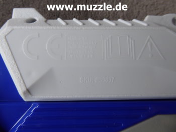 Fotos unten: Sowohl auf dem Korpus des Blasters, als auch auf dem Karton befindet sich eine Seriennummer. Hier: 73211R