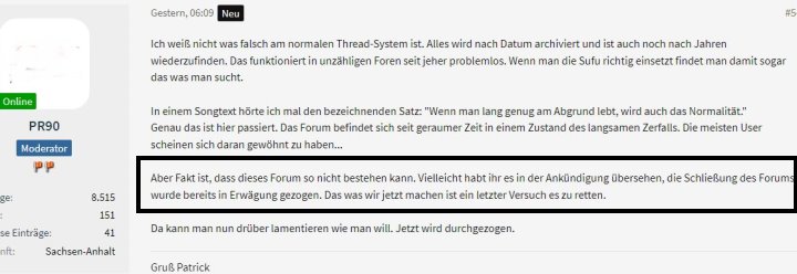Und das sagen die gehässigen Beobachter aus dem grünen Schattenforum dazu: