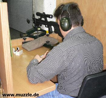 Sympathisch erklärend und anschaulich führte er die Funktion des “Walther G22” Kleinkalibergewehres vor und gab mir eine kurze Einweisung an der Waffe, bevor ich selber einige Durchgänge auf 50 m Distanz schießen durfte. Da ist man schnell im Element und könnte stundenlang weitermachen! :-) Nicht zuletzt auch die professionellen Auswertungsmöglichkeiten mittels moderner Technik lassen jede Menge Spaß aufkommen, auch wenn natürlich normalerweise auf diesem Schießstand konzentriert gearbeitet und getestet wird. Für einen interessierten Besucher wie mich mutet das alles natürlich an wie das berühmte Schlaraffenland, bzw. dessen Kernstück. ;-)