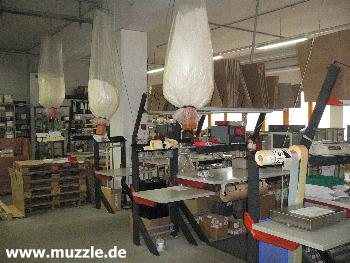 Hier ein Foto aus dem zusätzlich speziell abgesicherten Bereich bei UMAREX, denn hier werden die “Walther“ Feuerwaffen bearbeitet. Vergitterte Fenster, verschlossene Türen, sowie eine Alarmanlage kennzeichnen diese aufwändig gesicherte Zone. Station 12: Versand Hier findet das Verpacken und Versandbereitmachen der UMAREX-Güter statt. Da hier auch die Feuerwaffen abgefertigt werden, gelten auch hier strenge Sicherheitsbestimmungen. Alle „scharfen“ Waffen, die das Werk verlassen, werden mittels Scannern registriert.