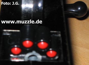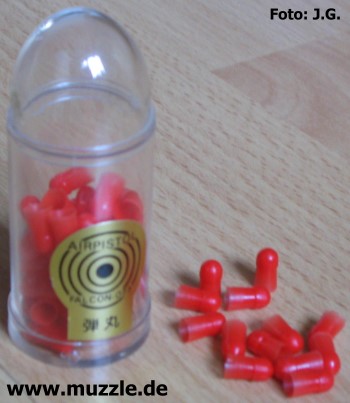 Geschosse: Weichgummiprojektile; hohl; Gewicht 0,12 g; 25,6 m/s