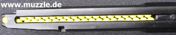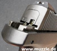 in seinem Schacht sitzende Magazinmodul und das minimalistische Kimmenbauteil trüben den positiven Gesamt- eindruck ein wenig.