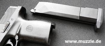 recht hochwertig wirkende Kunststoff des Grifftstücks, sowie die gute Passgenauigkeit der Bauteile ein erfreuliches Erscheinungsbild. Lediglich die unsauber gearbeiteten Kanten des Schlittens, das etwas wackelig