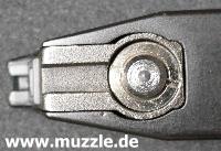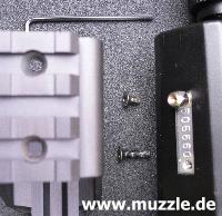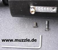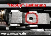 Bilder unten: Die “HopUp”-Justierung am Lauf kann mit dem mitgelieferten kleinen Inbus-Schlüssel verstellt werden.
