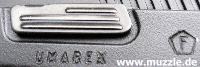 (rechts). Die Entriegelungstaste befindet linksseitig am Übergang vom Griffstück zum Abzugsbügel.