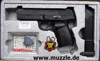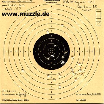 „Cybergun“-Modells „Smith & Wesson Sigma 40 F“ eine interessante Dimension. Eine Pistole, die ein reales Vorbild besitzt, dazu mit den originalen Markings versehen ist (Bild oben rechts), den Anwender mit
