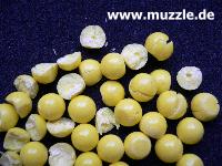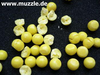 nicht zur Wiederverwendung geeignet. Treffen diese nämlich auf harte Ziele auf, erfolgen Deformierungen, bzw. zerlegen sich die Kugeln gar in Fragmente (Bilder unten). Es ist wegen der recht heftig zurückprallenden