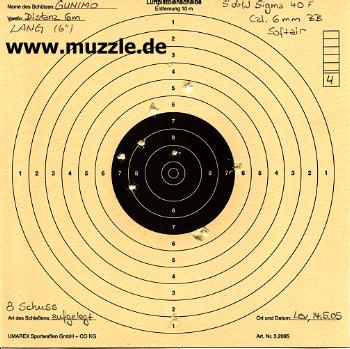 Auf der getesteten Distanz von 6 m kann mich die Testwaffe präzisionstechnisch zwar nicht völlig überzeugen,