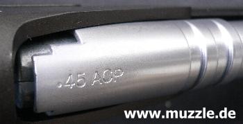 kaliberangabe (.45 ACP) auf dem Laufmantel.