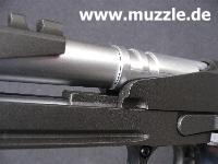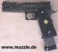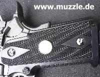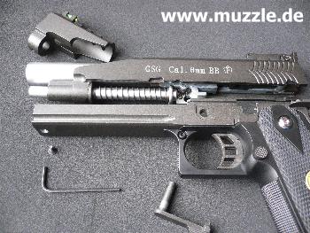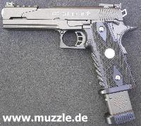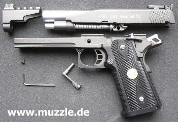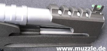 Zeitnahme erfolgt.) Im Jargon werden solche getunten Waffen “Race Guns” genannt. Dabei wird vor allem Wert auf Gewichtsminderung und Optimierung der Bedienteile gelegt. Der geteilte und skelettierte Schlitten