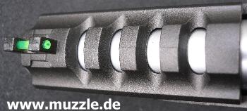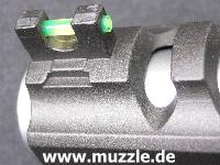 Visierung: Leuchtkorn aus lichtbündelndem Kunststoff, Kimme horizontal und vertikal justierbar