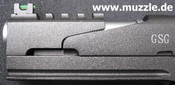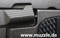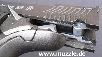 Die Pistole ist mit einer Schlittenfangvorrichtung ausgerüstet. Nach dem letzten Schuss rastet der Schlitten in