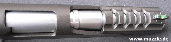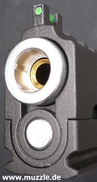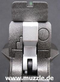 Die “HiCapa” ist mit einer seiten- und höhenverstellbaren Kimme bestückt. Das Korn besteht aus umge-