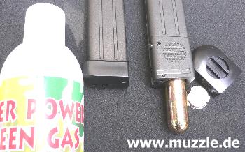 ebenso für CO2 wie die Details im Umgang mit dem Magazin selber (siehe oben). Das Treibmittel ins Magazin zu bringen, geht beim Gastank schneller als bei CO2, dafür wird der höhere Aufwand aber mit größerer Kapazität