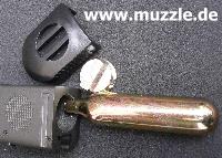 sich der Magazinboden abnehmen. Darunter befindet sich der Kammerverschluss. Der Magazinboden ist als Werkzeug ausgelegt mit dem man die Verschluss-Schraube beim Öffnen und Schließen leichter drehen kann.