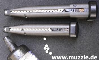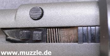 Bilder unten: Nur das CO2-Magazin ist mit einer Magazinfederarretierung bedacht worden. Der federbelastete