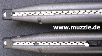 Bilder unten: Arbeitet man beim Bestücken der Magazins nicht sorgfältig genug, kann es zu Lücken im