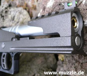 belohnt. Das wegen der Kohlendioxidkartuschendimensionen weit aus dem Griff herausragende Magazin ist hingegen optisch sicher nicht jedermanns Sache.