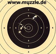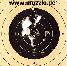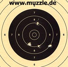Nachfolgend einige Zielscheiben (17 x 17 cm) aus den Testdurchgängen, aufgelegt gehaltene Waffe: