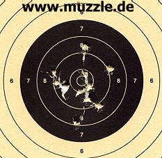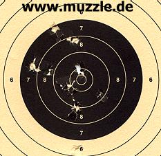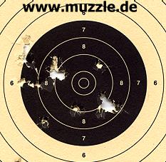 Testbedingungen: Kugeln cal. 6 mm mit 0,25g, Schussdistanz 7 m, offene Visierung, gut ausgeleuchteter Kellerschießstand .