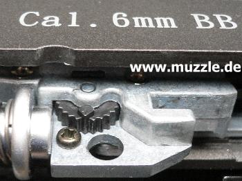 Schieber rastet in der unteren Position ein und man muss ihn beim Bestücken mit BBs nicht mit der Hand festhalten. Fingerakrobatik bleibt dem Schützen erspart und die Fingernägel danken es einem. Nach dem