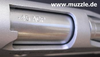 Bilder unten: Großkaliberangabe (.45 ACP) auf dem Laufmantel.