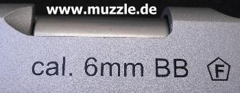 Kaliber: 6 mm BB System: GasBlowBack (GBB), bzw. CO2-BlowBack, HopUp)* justierbar )* HopUp = Vorrichtung (Walzen am Laufansatz) in Softairwaffen, die abgefeuerte BBs in eine Rotations- bewegung versetzt. Das dadurch herbeigeführte strömungsgünstigere Verhalten der Geschosse hat eine stabilere Flugbahn, bessere Präzision und eine größere Reichweite zur Folge. Antrieb: Greengas, Redgas o. ä. bzw. alternativ 12g-CO2-Kartusche (bei speziellem Magazin) Magazinkapazität: GBB = 30 Schuss, CO2= 36 Schuss Schussausbeute: eine Magazinfüllung mit Greengas - 2,5 Magazine mit einer 12g-CO2-Kapsel Lauf: innen glatt (ohne Züge)