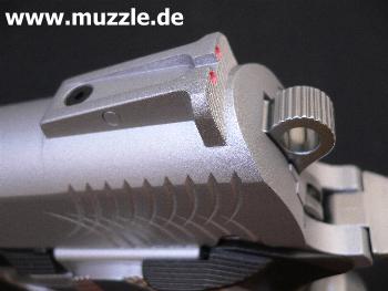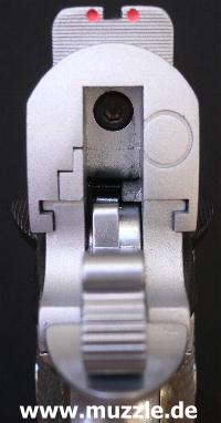 Visierung: Leider wartet die Waffe lediglich mit einer nicht verstellbaren Visierung auf. An Kimme und Korn befinden sich Farbmarkierungen.
