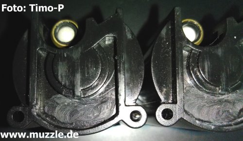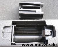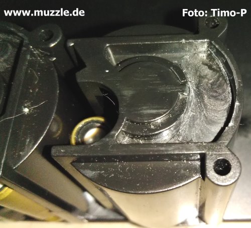 So rutscht der Finger beim Eingreifen automatisch in die bearbeitete Mulde vom Magazin und wenn das alles sauber und krümelfrei ist, kann der Magazinwechsel bei Übung binnen 2 sek. vollzogen werden. Ich sprühe Magazinschacht und Magazine selber gelegentlich mit Silikonöl ein, bzw. wische sie damit ein, damit alles reibungsloser funktioniert.