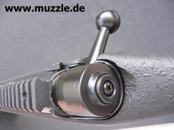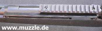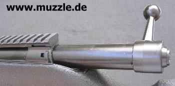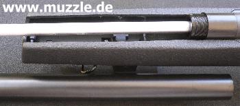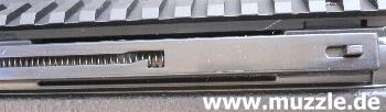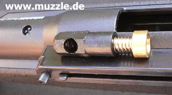 Bilder unten: Links - Lauf bei abgeschraubtem Laufmantel. Rechts - Blick ins offene Auswurffenster