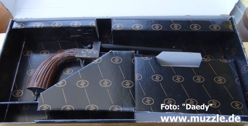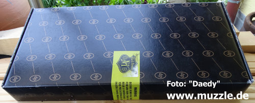 Fotos unten: Die Replik einer belgischen Zimmer-Pistole kommt in einem einfachen, bedruckten Pappkarton zum Käufer.