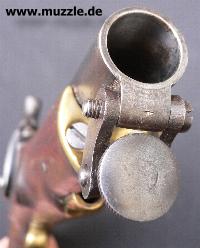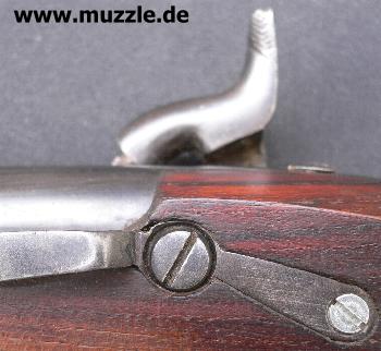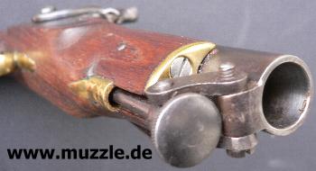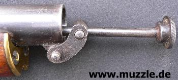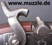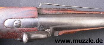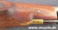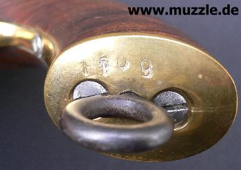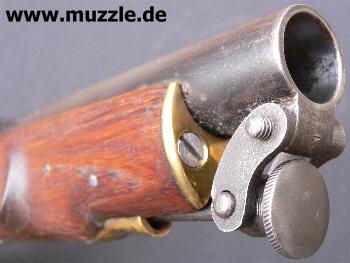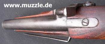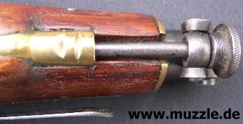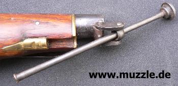 der Mündung schwenkbar befestigt ist. Dies verhindert, dass der Ladestock im Eifer des Gefechtes verloren gehen könnte.
