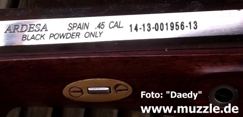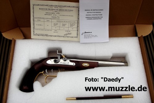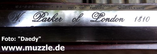 Hersteller: “Ardesa” - Made in Spain Modell: William Parker of London 1810 Typ: Vorderlader, Perkussionspistole (Schwarzpulver/Zündhütchen) Waffennr.: 14-13-001956-13 Kaliber: .45 Zündhütchen #: 209 Lauflänge: 264 mm (gezogen) Länge: 445 mm Gewicht: 1.100 g Visierung: Starr Abzug: Doppelzüngel-Stecher (“Deutscher Stecher”) Bemerkung: Umrüstung auf “Pedersoli”-Indoor-Shooting Danksagung: Vielen Dank an “Daedy” für die Übermittlung der Fotos und Informationen, sowie die Freigabe zur Publikation auf “muzzle.de”.