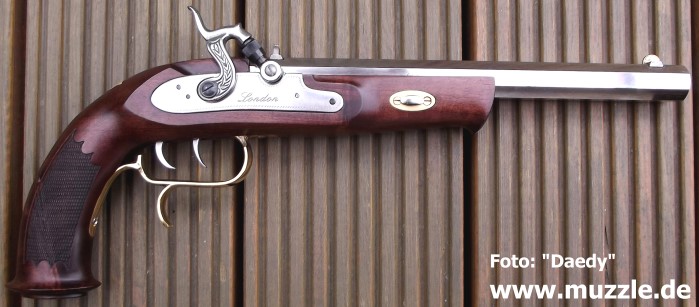 Fotos unten: Pistole mit umgerüstetem Piston für Indoor-Shooting nur mit Zündhütchen (“Pedersoli”).