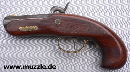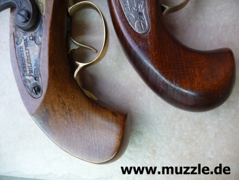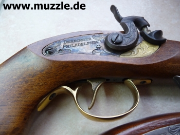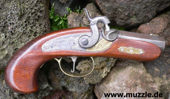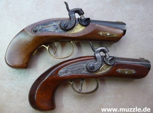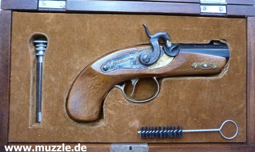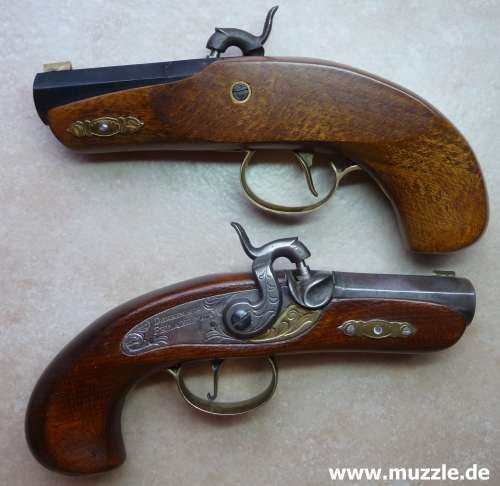 Diese Replika wurde im Original von Henry Deringer um 1850 gefertigt. Die kleinen Taschenpistolen waren im