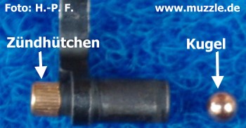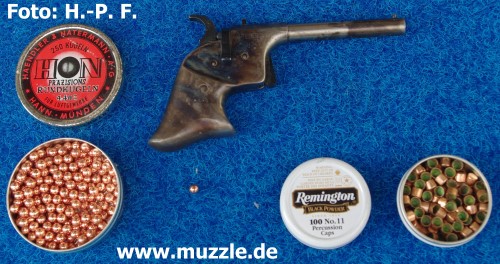 Ladung: Waffe nicht für Schwarzpulverladung ausgelegt, wird nur mit Zündhütchen geschossen