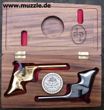 Zubehör: Holzkassette für ein oder zwei Derringer und Zündhütchendose