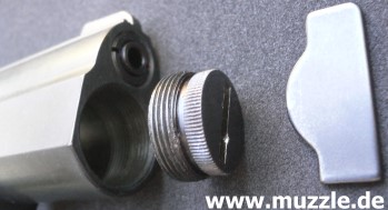 Auch der Magazinschacht der Schreckschusswaffe ist für die Aufnahme der Schachtabdeckung nicht geeignet,