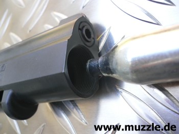 Die Verwendung des CO2-Systems auf einer Gas-/Schreckschusswaffe (hier “Reck Government”, Cal. 8 mm K)