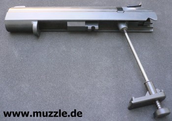 Bestandteile/Auführung: Schlittenaufsatz aus Druckguss mit gezogenem Lothar-Walter-Lauf, Ladeschieber