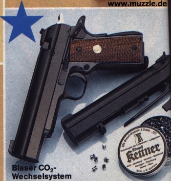 “Blaser”-CO2-Wechselsystem auf “Colt Government 1991A1” (Remake des “Colt 1911A1”)