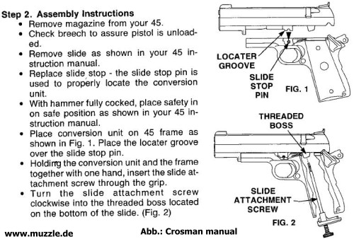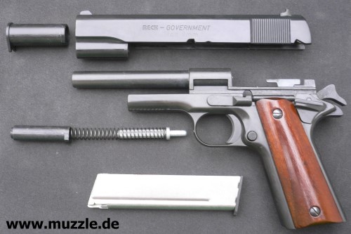 scheitert am Sachverhalt, dass deren Griffstück mit Lauf - anders als beim “scharfen” Colt 1911 - ein zusam- menhängendes Bauteil ist. Eine weitere Demontage ist somit nicht möglich.