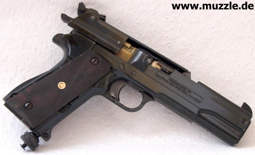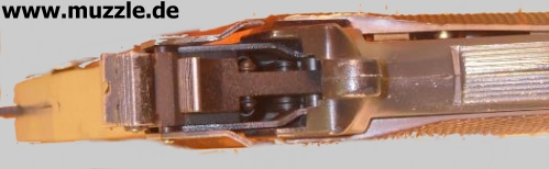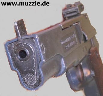 Foto oben: Waffe mit zurückgezogenem Schlitten.