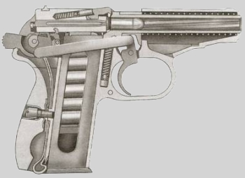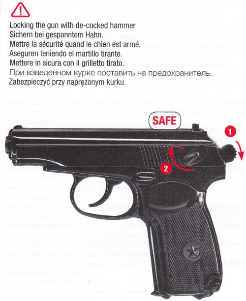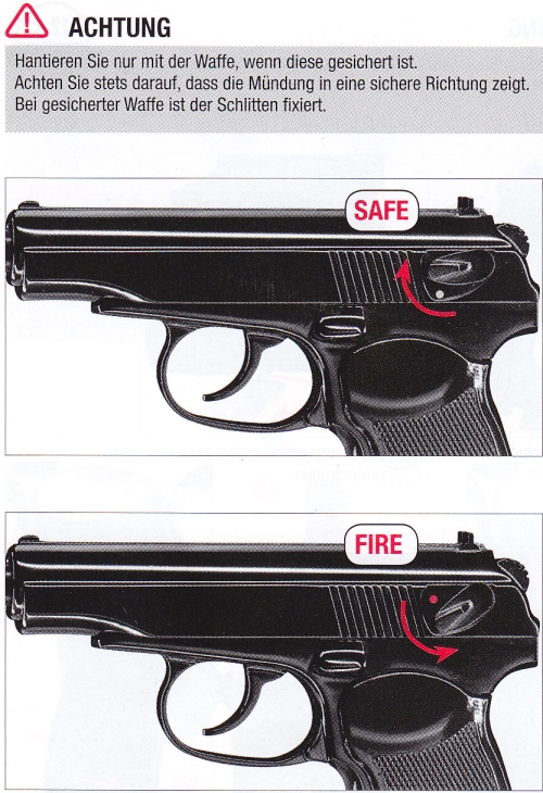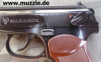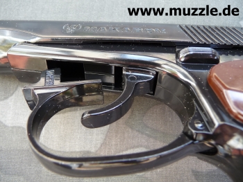 dann nicht mehr bewegt werden. Die Makarov lässt sich auch im bereits gespannten Status noch sichern. Vorspannen im gesicherten Zustand ist nicht möglich.