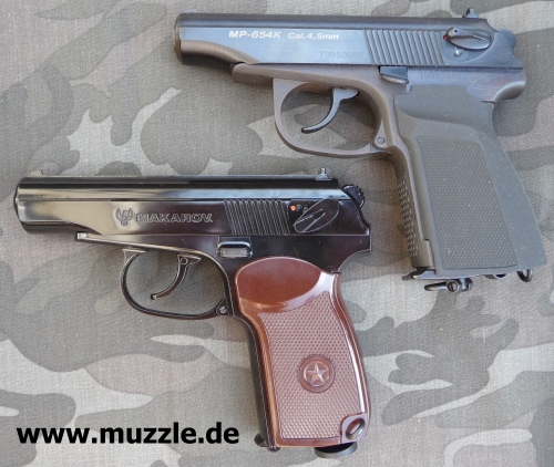 Bilder unten: Optischer Abgleich zweier Makarov-CO2-”Klone”. Die “Baikal MP654K” (im Bild jeweils oben) ist
