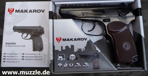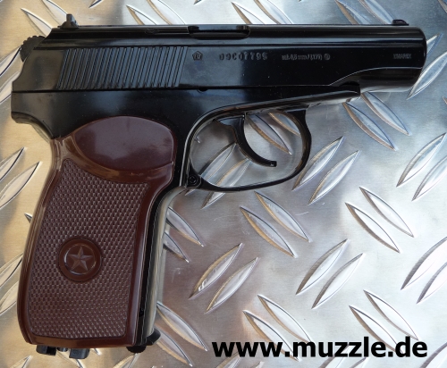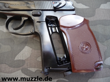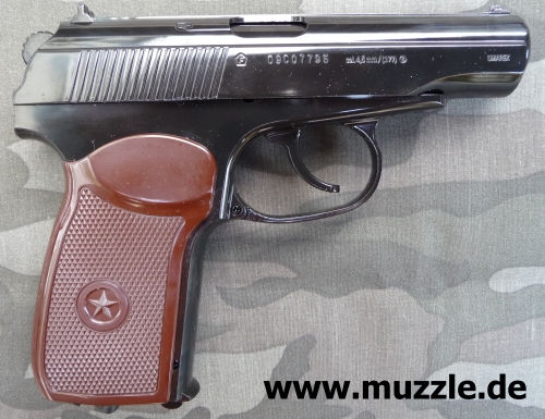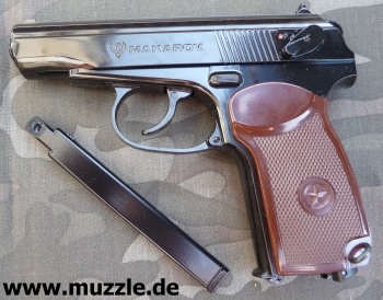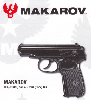 Die “Makarov” ist eine semiautomatische CO2-Pistole, deren Abzug manuell vorgespannt werden kann (SA-