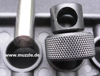 Im Handumdrehen hat man den Laufmantel mit dem mitgelieferten Schlüssel ausgetauscht. Der Innenlauf wird ohne Werkzeug einfach aus dem Rahmen herausgeschraubt. Anschließend mus das Korn noch übertragen werden.