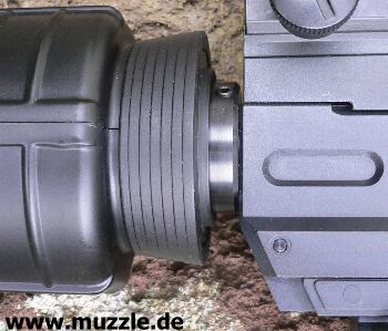 Bilder oben und unten: Verbindungsstelle der vorderen und hinteren Laufhülse.